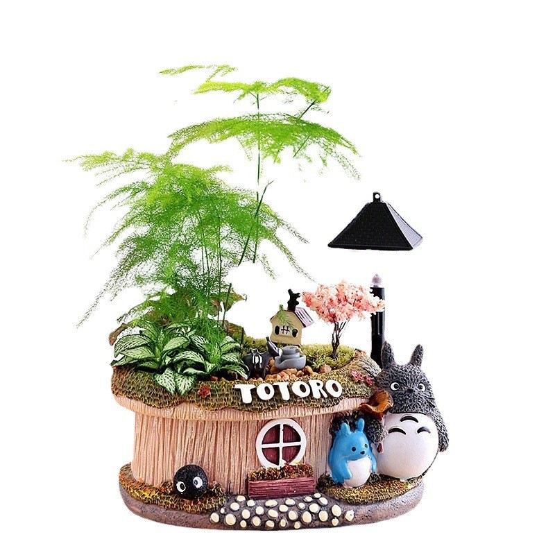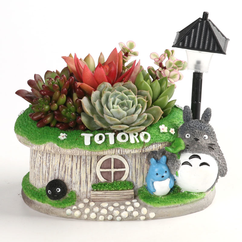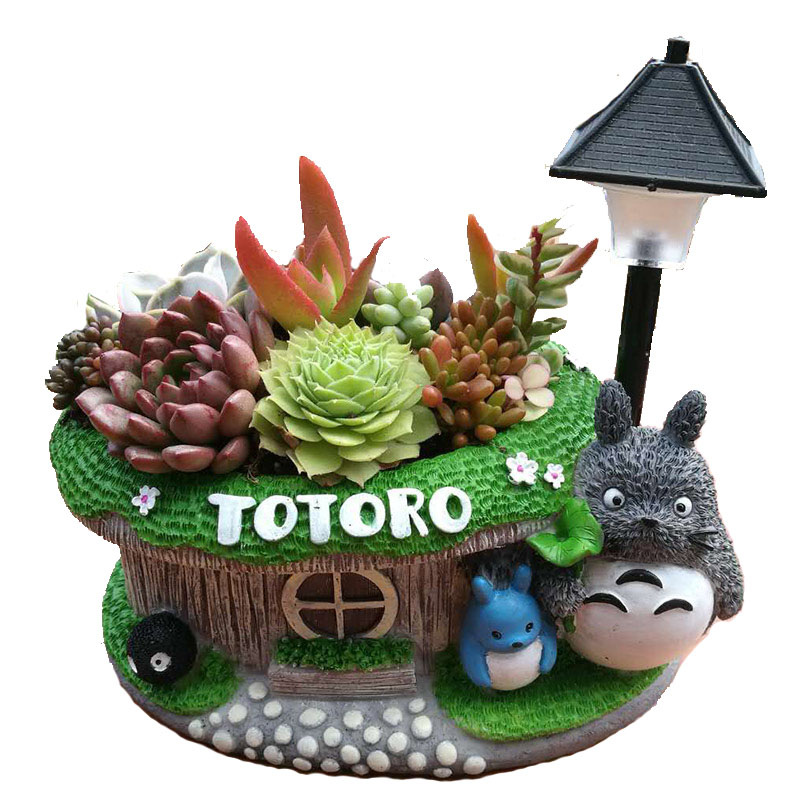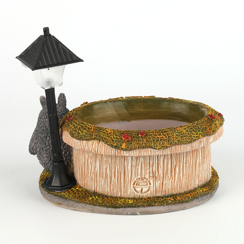 创意卡通多肉花盆 卡通双色LED灯树脂花盆 桌面摆件厂家